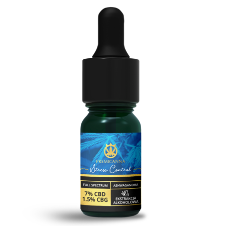 Stress Control - olejek CBD z ashwagandhą to olejek firmy Premicanna - 7% CBD, 1,5 % CBG + ashwagandha. Ashwagandha, to inaczej siła konia.