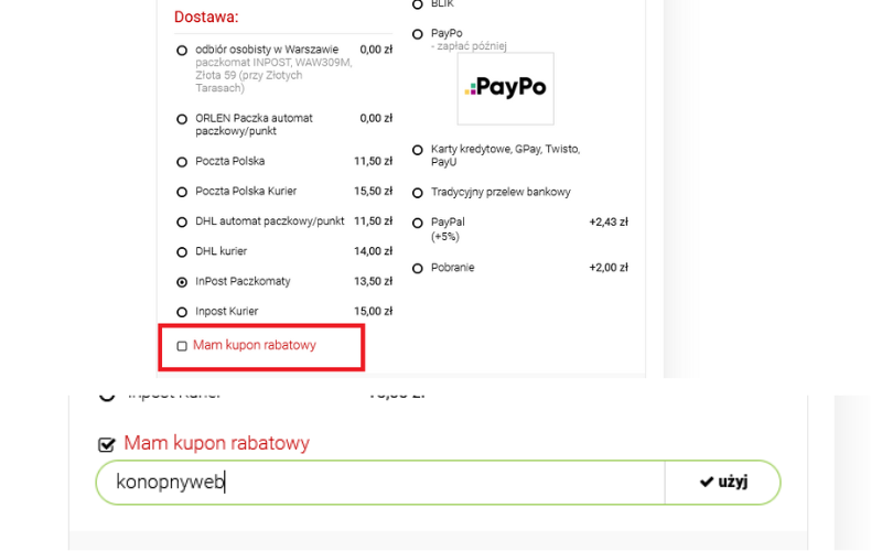 Jeśli szukasz dobrych olejków z Polskich upraw przejdź na stronę Cannaba Organics i w zamówieniu w miejscu przeznaczonym na kod wpisz : konopnyweb  -  ten kod daje Tobie 10% zniżki na całe zamówienie.